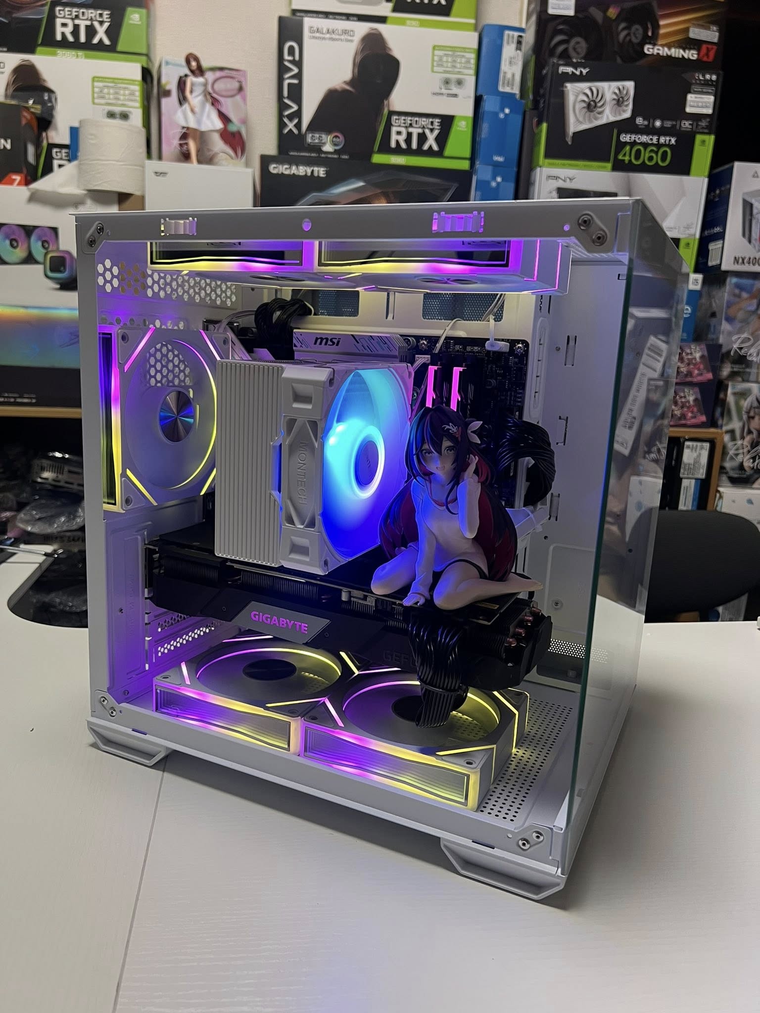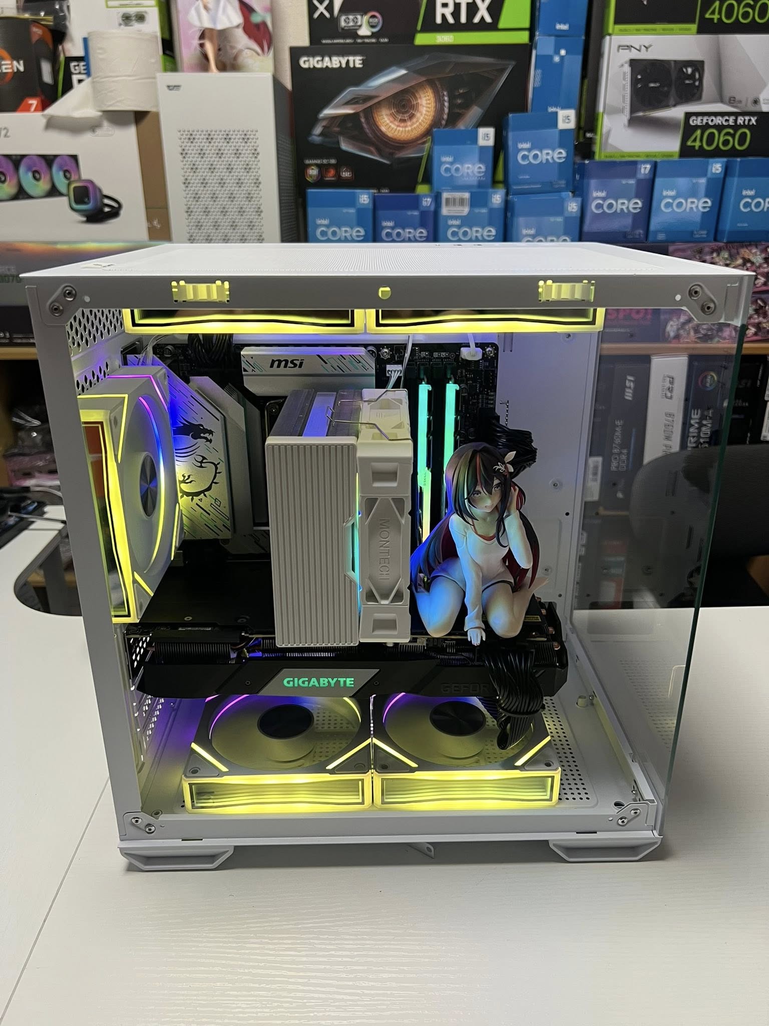- Tản nhiệt khí Montech RGB: Hệ thống tản nhiệt hiệu quả giúp giữ cho CPU luôn mát mẻ, đảm bảo hiệu suất hoạt động ổn định và kéo dài tuổi thọ của linh kiện. Đèn RGB tích hợp còn tăng thêm vẻ đẹp thẩm mỹ cho bộ máy.