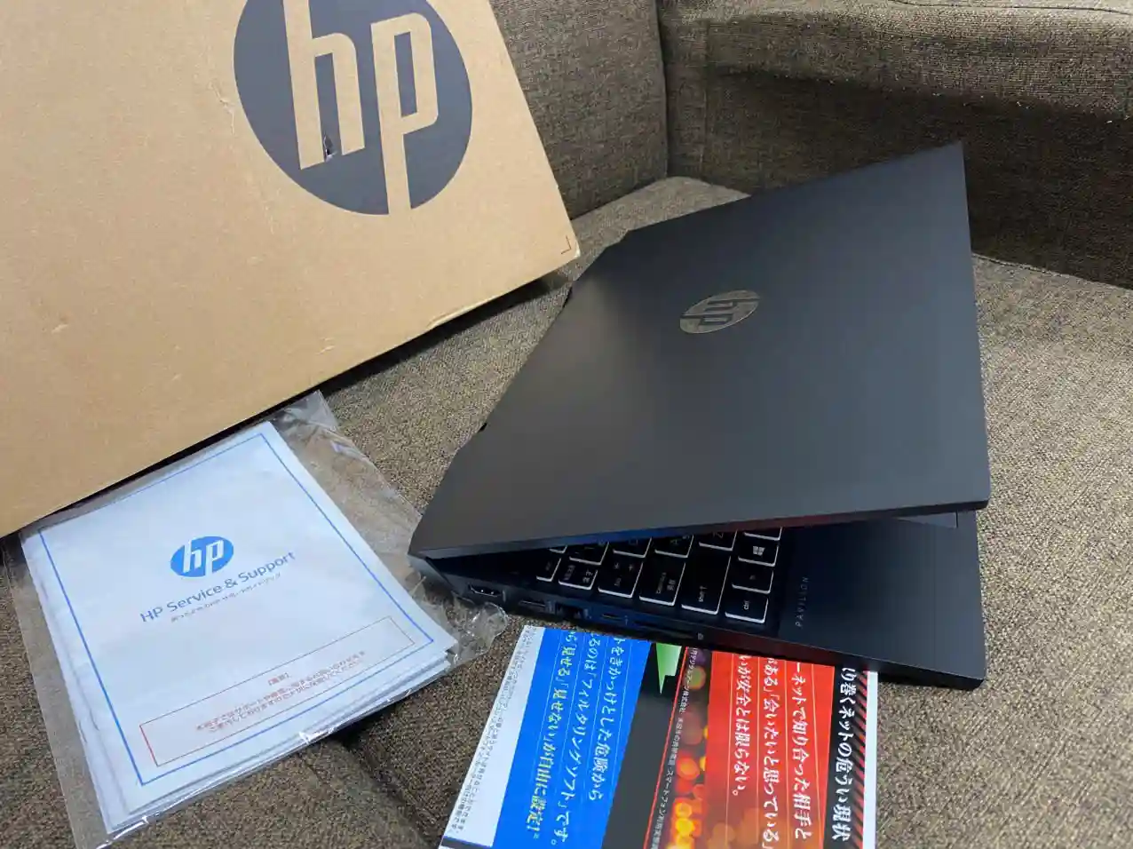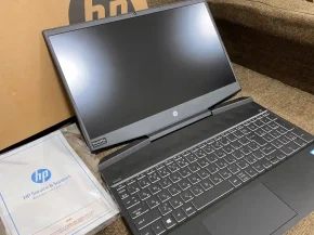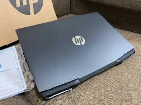 - Thiết kế: Vỏ máy bằng nhựa màu đen với logo HP màu xanh lá (hoặc trắng) trên nắp, tạo cảm giác mạnh mẽ, đậm chất gaming.